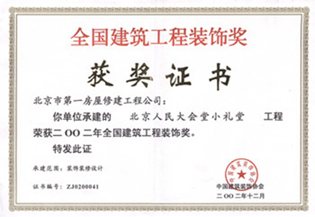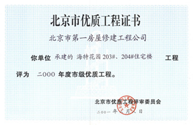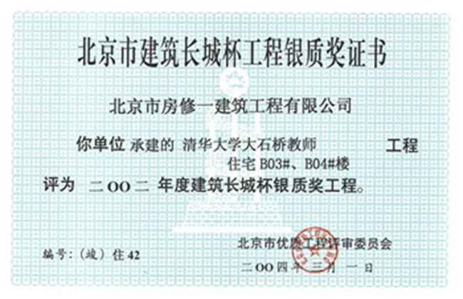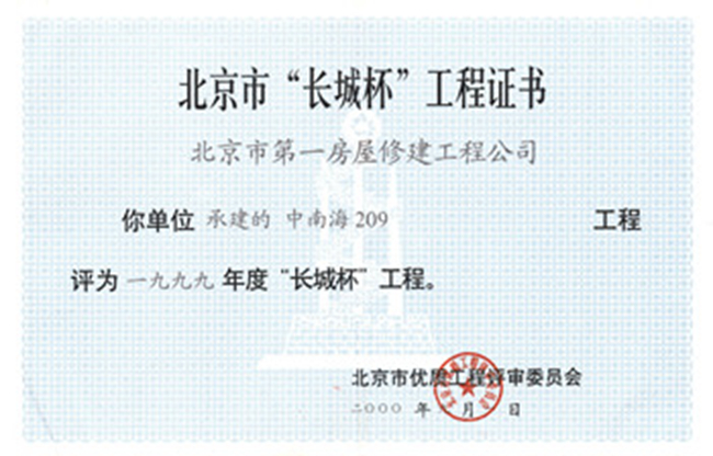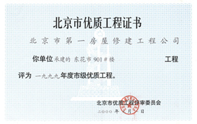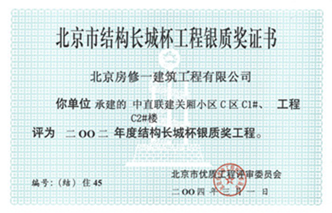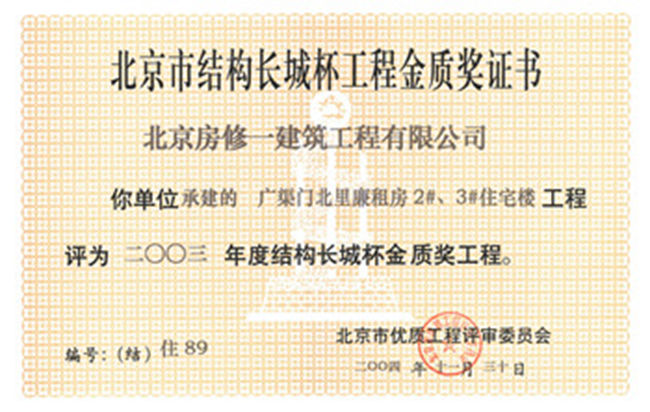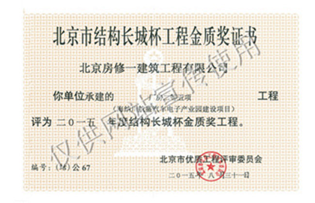 北京市結構長(cháng)城杯工程金質(zhì)獎
