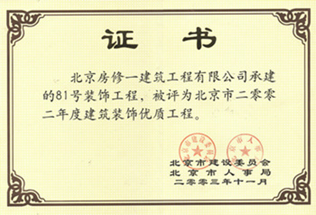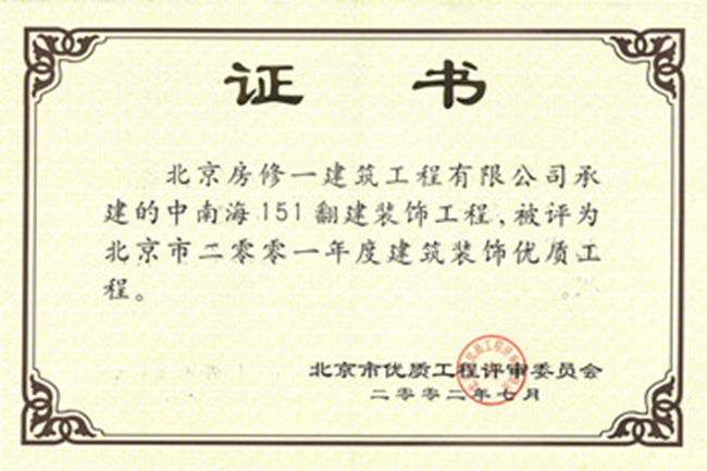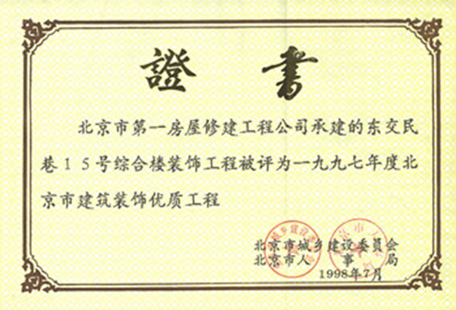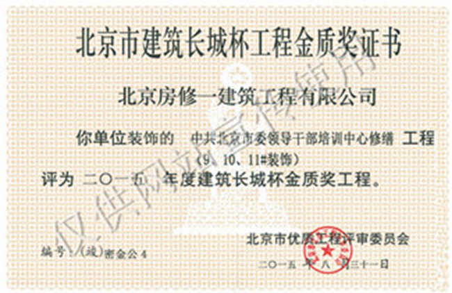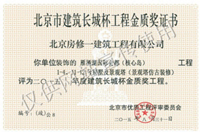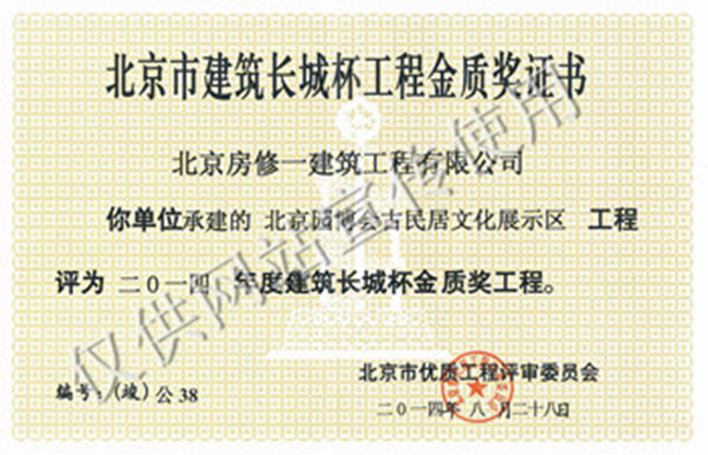 北京市建筑長(cháng)城杯工程金質(zhì)獎